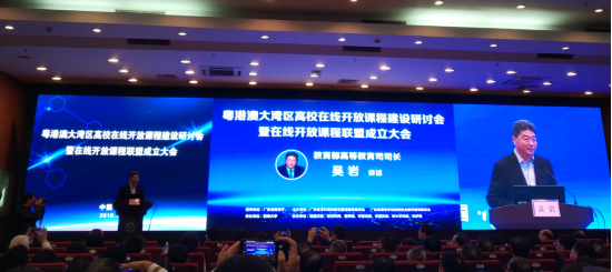 本网讯 11月24日,粤港澳大湾区高校在线开放课程建设研讨会暨在线开放课程联盟成立大会召开,教育部高等教育司司长吴岩,省委教育工委副书记、省教育厅党组副书记、副厅长邢锋,广东省教育厅高教处处长郑文以及粤港澳大湾区高校代表等近300人参加会议。我校副校长焦方太、教务处处长姜琳等应邀参会。