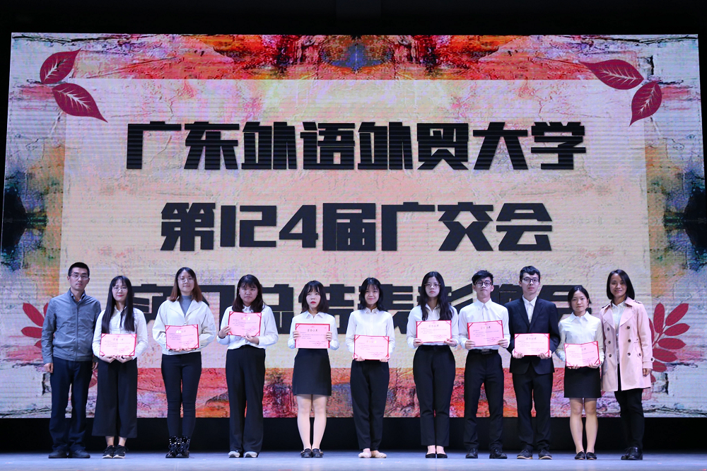本网讯 11月29日晚,第124届广交会实习总结大会暨表彰晚会在我校南校区B8学术报告厅举行。凭着广外学子的出色工作表现,第124届广交会共评出134名优秀实习生,晚会现场为38名优秀实习生代表颁发荣誉证书。广交会组织方肯定了我校学子的实习工作,优秀实习生分享了实习经历。