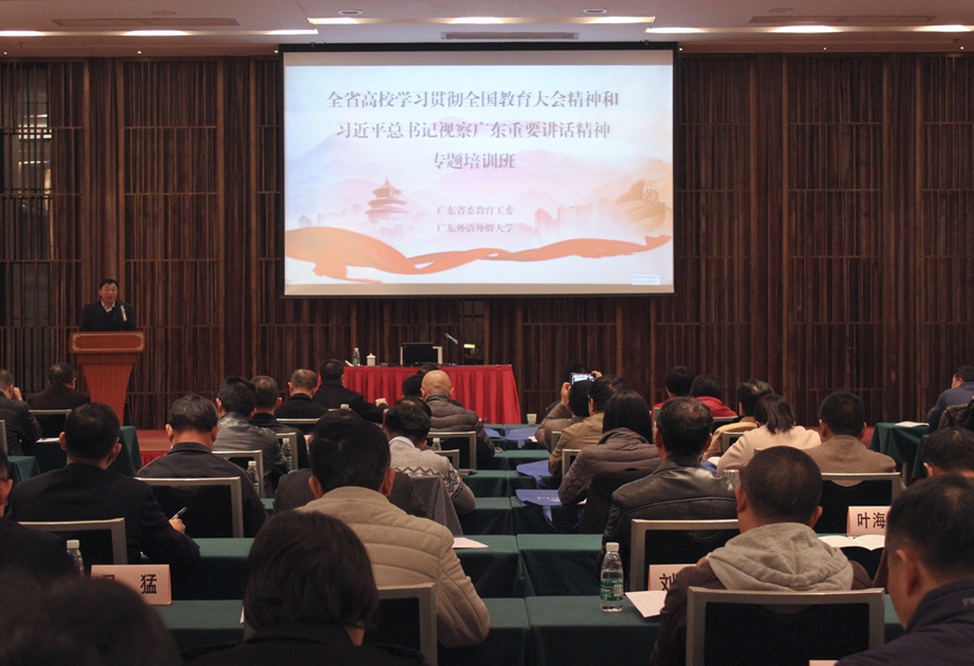 本网讯 为深入学习和贯彻全国教育大会精神和习近平总书记视察广东的重要讲话精神,由省委教育工委主办,我校承办的全省高校基层党组织书记第三期专题培训班于12月10日下午开班。我校党委副书记李云明、省委宣讲团团长杜新山等领导及来自全省各高校学院的95名各级党组织书记参加了开班仪式。