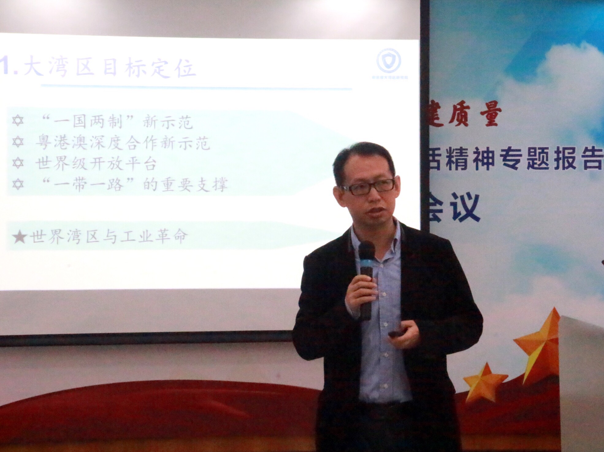 本网讯 12月7日,商英学院召开学习贯彻习近平总书记视察广东重要讲话精神专题报告会暨党支部建设工作会议,宣读《商英学院关于在在学生党支部中开展“十个一”活动的通知》,正式启动党建工作质量提升工程。粤港澳大湾区研究院院长申明浩为与会师生党员作了学习贯彻习近平总书记视察广东重要讲话精神的专题报告。
