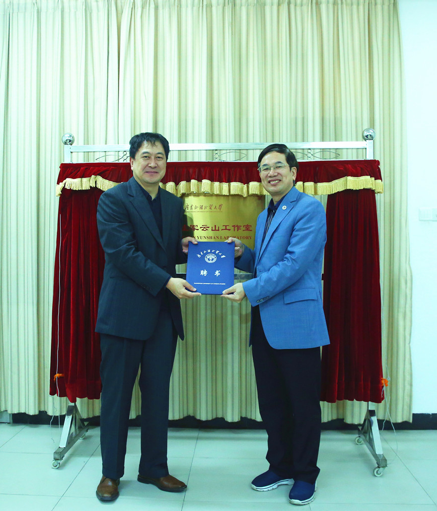 本网讯 1月11日上午,我校首个云山工作室—“桂军云山工作室”揭牌仪式在北校区第六教学楼贵宾室举行,林桂军教授受聘为工作室主任、首席专家。我校党委书记隋广军,校长、党委副书记石佑启,党委常委、副校长何传添,经济贸易学院相关负责人,人事处、科研处、研究生院等相关职能部门负责人出席了揭牌仪式,仪式由何传添主持。