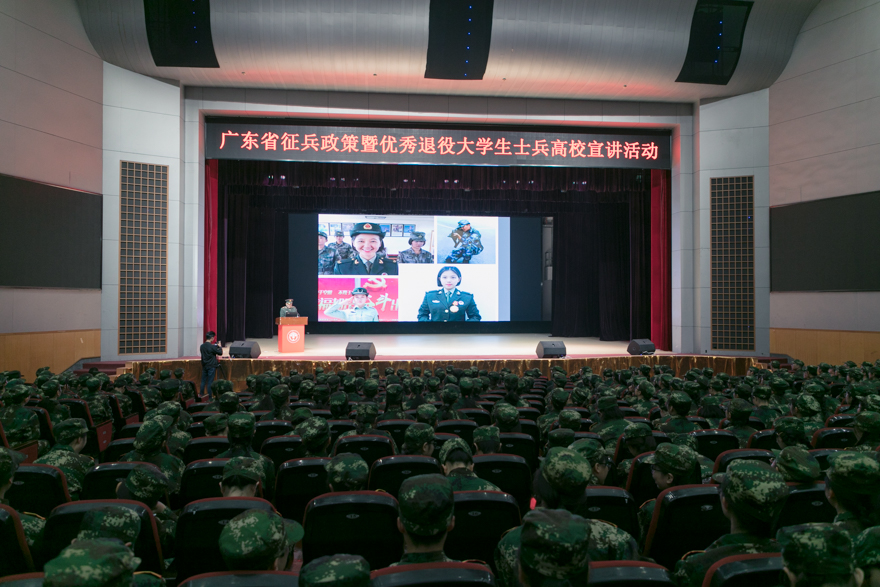 本网讯 1月15日,为积极响应党和政府的征兵号召,推进大学生的应征入伍工作,由中共广东省委宣传部、广东省教育厅和广东省人民政府征兵办公室举办的全省征兵政策暨优秀退役大学生士兵高校宣讲活动在我校北校区云山会堂召开。我校副校长刘建达,广东省军区动员局正营职参谋盛夏,广州市白云区武装部政委叶飞及优秀退役大学生代表出席活动。