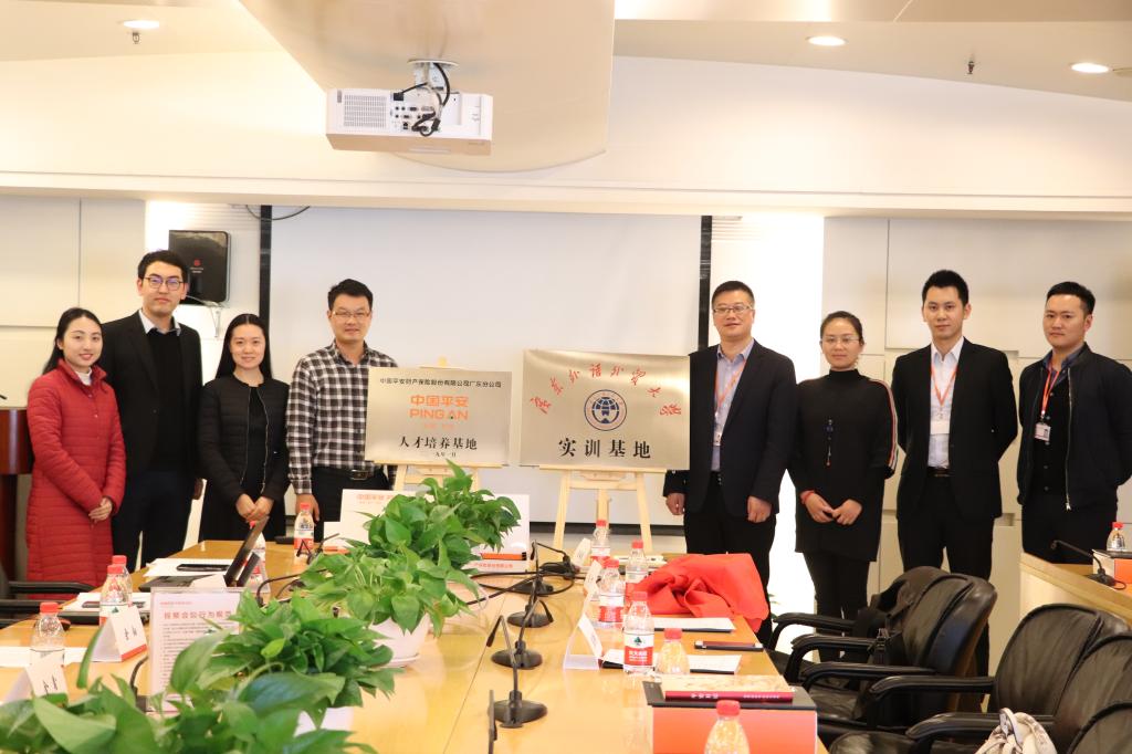 本网讯 1月17日下午,数学与统计学院师生一行走访中国平安财产保险股份有限公司广东分公司,代表学校与平安财险广东分公司签订了《校企合作框架协议书》,举行了实习基地挂牌仪式,并与平安财险广东分公司副总经理李全祥、人力资源部副总李波、相关部门主管及我校在平安财险工作的校友进行了座谈。