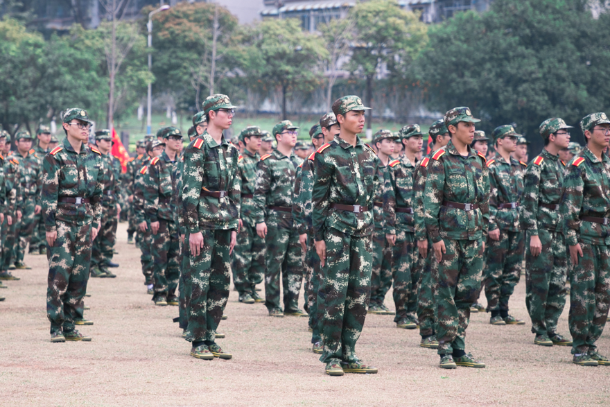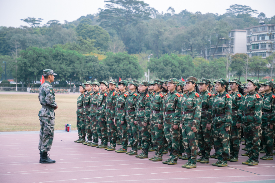 “蹲下!”一声令下!过了很久很久,双脚开始瑟瑟发抖,耳朵里血管的血液因为坚持而加速循环使耳朵发烫,心中默念了千千万万遍的“坚持”“坚持”,还好,下一秒我们终于终于站起来了。每一天都耳朵都充满着教官的口令,每一天都用双脚踏平这片土地,每一天都在进行大学生心理与训练。那么谁陪我们度过这个艰难的过程呢?不言而喻,是不仅严格要求更是陪我们聊天吹水的教官。犹记得四营15连连长最常说的一句话是:“只要你们好好训练,达到我想要的标准,什么事情都好了”于我们的确如此,只要我们一次达到他的要求,我们便开始了听他讲人生道理的过程,连长可以从一个小小水瓶的摆放问题一直到做人的标准:注重细节,细节决定成败。聆听的过程,可以说是价值观人生观世界观的一次再教育再重构的重要环节。商英学院吴同学对此深有感触:我印象比较深刻的是教官毫不吝啬地在分享自己走过人生道路之后明白的大道理,让我们不仅仅在体能上受到锻炼,还有“精神洗礼”。杨同学说“连长有种以德服人的风范,虽然吹水多,但效率高,懂得抓住人心”。
