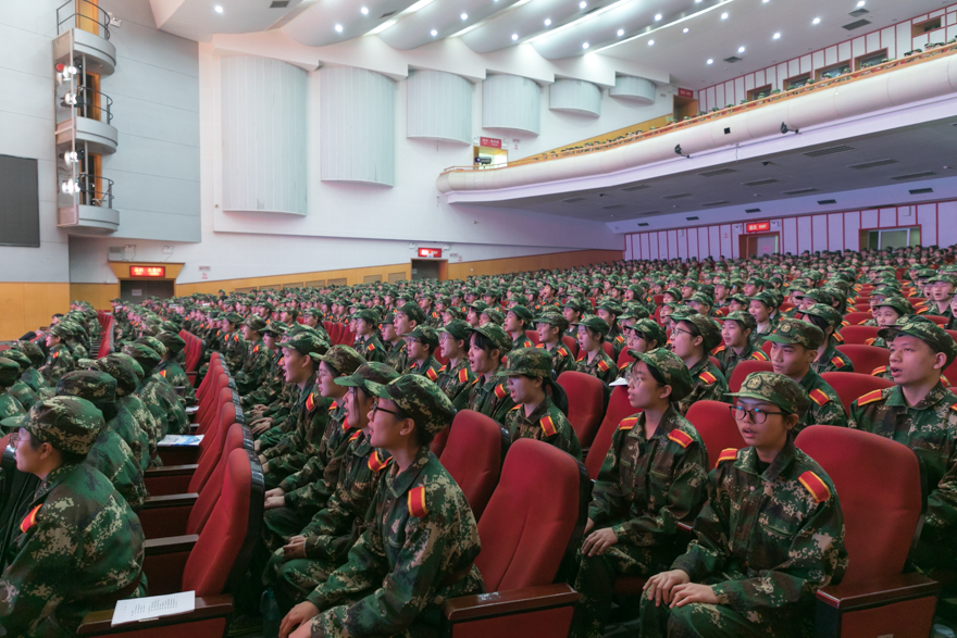 当然,军训习得人生大道理的过程不仅仅发生在运动场上更是发生在军事理论课的课堂上。云山会堂里鸦雀无声,同伴们笔直的坐着,聚精会神的听着。老师会给我们讲中国古代近代国防历史、信息化战争、现在的中国外交环境等不同的专题,时不时穿插各种有趣的小视频有益于我们更好的吸收和转化知识,让中国的国防建设在脑海里建构完满,国防观念深深扎根。听完军事理论课之后,英文学院的向同学表示“军训之前,我并不知道怎么西方国家眼里中国是什么样子,经过教导员的讲示,我才知道原来西方对于中国的“动乱”、“腐败”、“性”等最感兴趣,他们喜欢看到中国“脏乱差”,却不关注中国改革开放后的瞩目成果,不关注中国的进步。我想,如果我们再强大一点,发出的中国声音再响亮一点,那么这个被人看不起的局面会不会有所改变?作为新时代的青年,我们有责任、有义务,理应肩负起中华复兴的伟大使命,为中华之崛起而努力奋斗!”