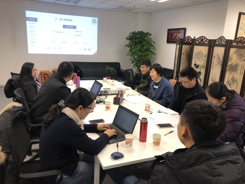 1月9日上午调研队伍在上海立信会计金融学院会计学院进行调研。立信刚刚完成教育部本科评估,副院长林振兴介绍了会计学院的学科建设与专业发展历程、应用型人才培养模式以及实践实验教学改革情况。实践教学部老师王昕介绍了与金蝶集团合作开发《财务共享》课程的情况,会计学院会计学院审计学专业主任魏晓交流了审计专业建设与审计课程教学的相关问题。