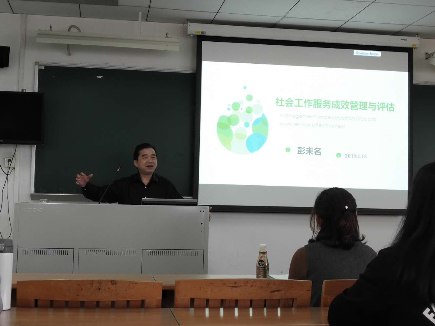 社会工作系围绕社会工作行业的发展、社会工作专业的教学开展了两场讲座。公管学院院长彭未名结合国内社工专业、社工行业的发展,就社会工作服务成效这一问题做了详尽的分析与展望。从英国访学回国的教师李丹和陈美招分享了英国高校社工专业的教学方法与经验,以及英国社工实务的发展情况。