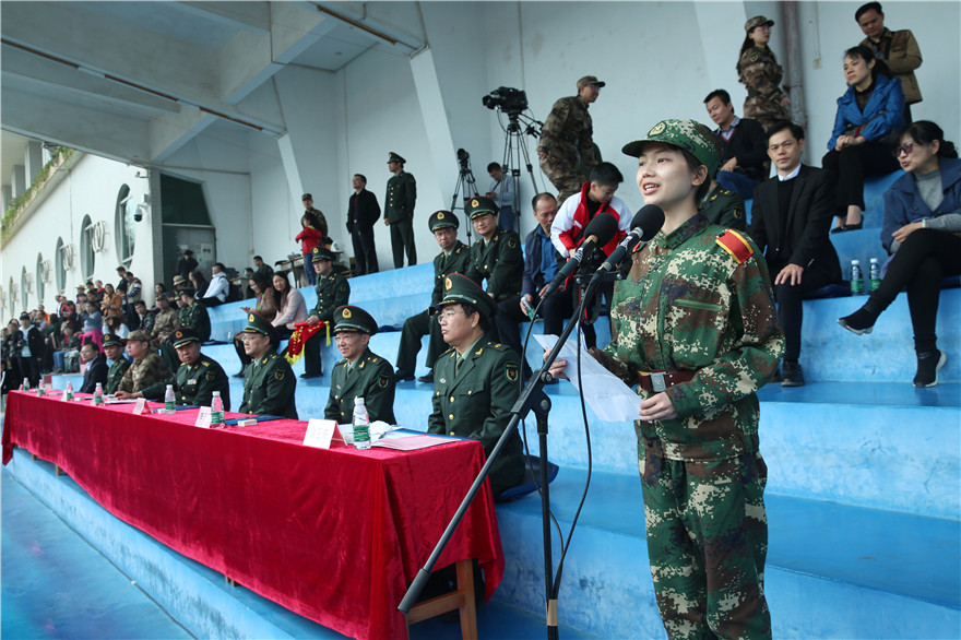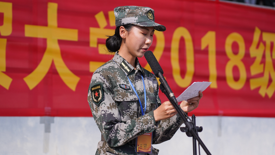 北校区学生代表吴楚琪在发言中表示:“军训虽然即将结束,但军训所教会我们的正能量将常留。”她提到,14天的军训让同学们褪去娇气、惰性,同学们的神情变得刚毅,身形变得挺拔。南校区学生代表王必成说:“十四天以来,训练场上沙哑的口令,无数次不厌其烦的动作示范,被冬日晒黑的面庞,被汗水浸透的衣衫,教官们这些让我们感动的细节,无不折射出他们严谨的作风、严明的纪律和吃苦耐劳的精神”,正是这些可爱的人的付出与陪伴,让军训变得更有意义。北校区教官代表钟书晴表示:“从老师和同学们的身上,我们教官也学到了许多宝贵的知识,大家互相交流、共同提高!”希望同学们在日后不断挑战自己、充实自己、完善自己、超越自己。南校区教官代表罗慧,是我校艺术学院2018届毕业生。她带来了教官们的期望,“希望同学们今后继续发扬军训精神与优良作风,把军训中形成的吃苦耐劳精神和严明的组织纪律融入到生活中去”。