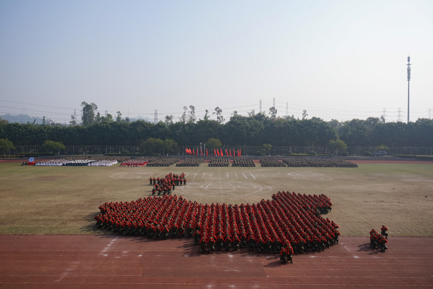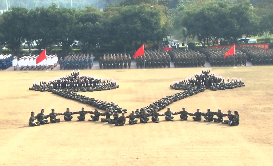 本网讯 经过14天的刻苦训练,1月25日上午,2018级新生军训汇报表演暨总结表彰大会举行。同学们以饱满的的热情投入到军训中去,激情澎湃、斗志昂扬。在分列式中,他们英姿飒爽、步履整齐;军事技能表演中,他们敏捷灵活,身姿矫健,而北校区221名同学组成的“惊鸿队”和南校区812名同学组成的“凤凰队”摆出的飞机、校名、校徽等精准造型,惊艳全场。军训汇报表演展示出我校学子的军训成果,场面壮观、精彩纷呈。我校党委书记隋广军和校长石佑启分别在南北校区观看军训汇演。