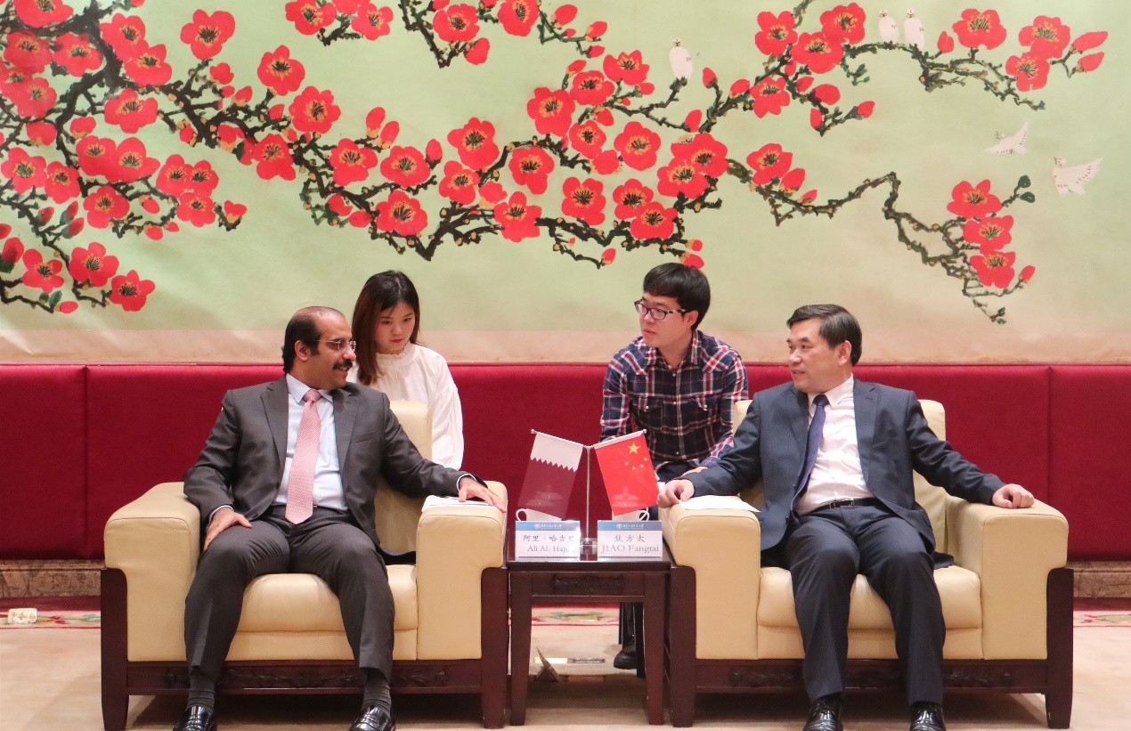 阿里·哈吉里对我校的欢迎表示感谢,并向我方介绍了卡塔尔国与中国在经济、文化等方面的密切合作。他表示,中国历史文化悠久,近年来经济发展迅速。希望通过此次交流机会,加深双方相互了解,促进两国学术交流、知识共享,并展开进一步的合作。卡塔尔国驻广州总领事馆愿为我校与卡塔尔高校建立合作关系及开展多种形式的合作提供支持与帮助。