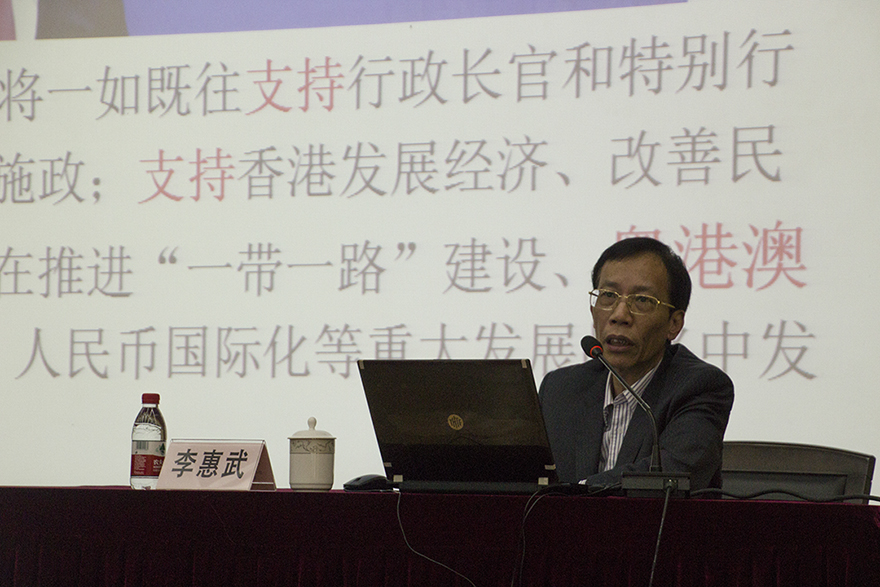 李惠武指出,粤港澳大湾区是习近平总书记亲自谋划部署的战略,内容丰富,意义重大。他系统解读了《粤港澳大湾区发展规划纲要》的主要内容,重点阐释了习近平总书记关于粤港澳大湾区建设的重要论述,解释了什么是湾区经济,解答了中国为什么要建大湾区、为什么选址粤港澳来建大湾区,以及广东省落实粤港澳大湾区规划纲要的相关举措等,让与会者对粤港澳大湾区的建设、对广东经济社会发展,对中国进一步深化改革、扩大开放,建立与国际接轨的开放型经济新体制,建设高水平参与国际经济合作新平台等国家重大战略,有了更清晰的认识和更深入的理解。
