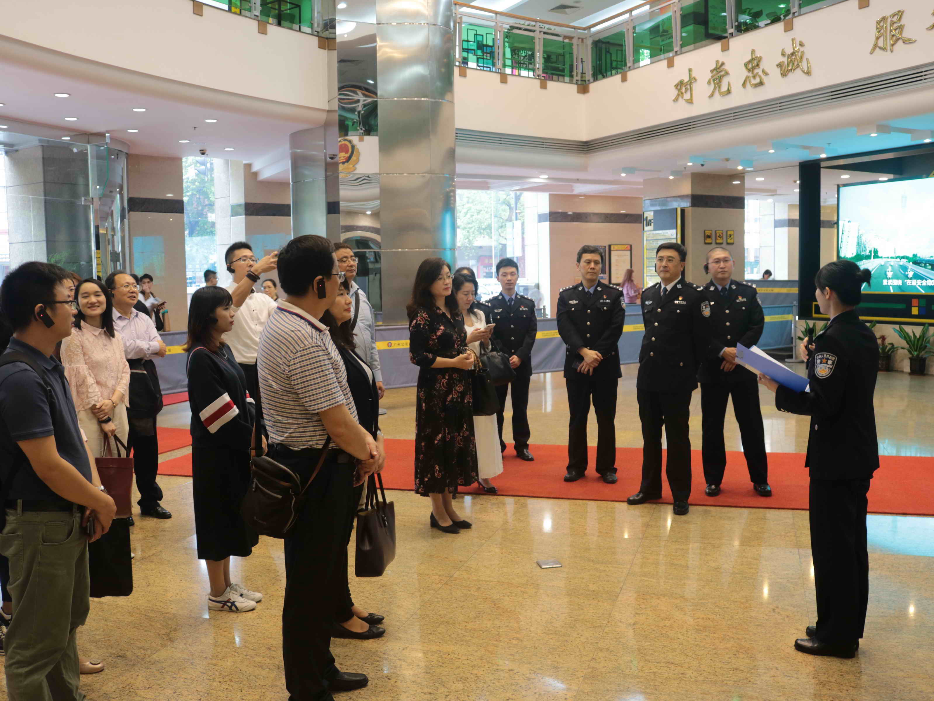 当天下午,广州市公安局出入境管理支队党委副书记、政委刘奕鹏向留学生学院党支部一行介绍了出入境管理支队签证大队党支部的党建工作情况,并强调支队时刻学习贯彻习近平新时代中国特色社会主义思想,工作开展均以便民为出发点,力求通过科技创新提升办证效率和服务水平。随后,众人参观了多功能展示厅,并进行了党支部结对共建交流座谈会。
