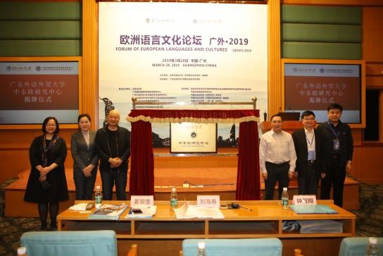 本网讯 3月28日,2019欧洲语言文化论坛在我校举行。论坛开幕式上举行了我校中东欧研究中心揭牌仪式。教育部高等学校外语教学指导委员会非通用语种类专业教学指导分委员会主任委员姜景奎、我校副校长刘海春、中国非通用语教学研究会会长钟智翔、北京外国语大学欧洲语言文化学院院长赵刚在开幕式上致辞。
