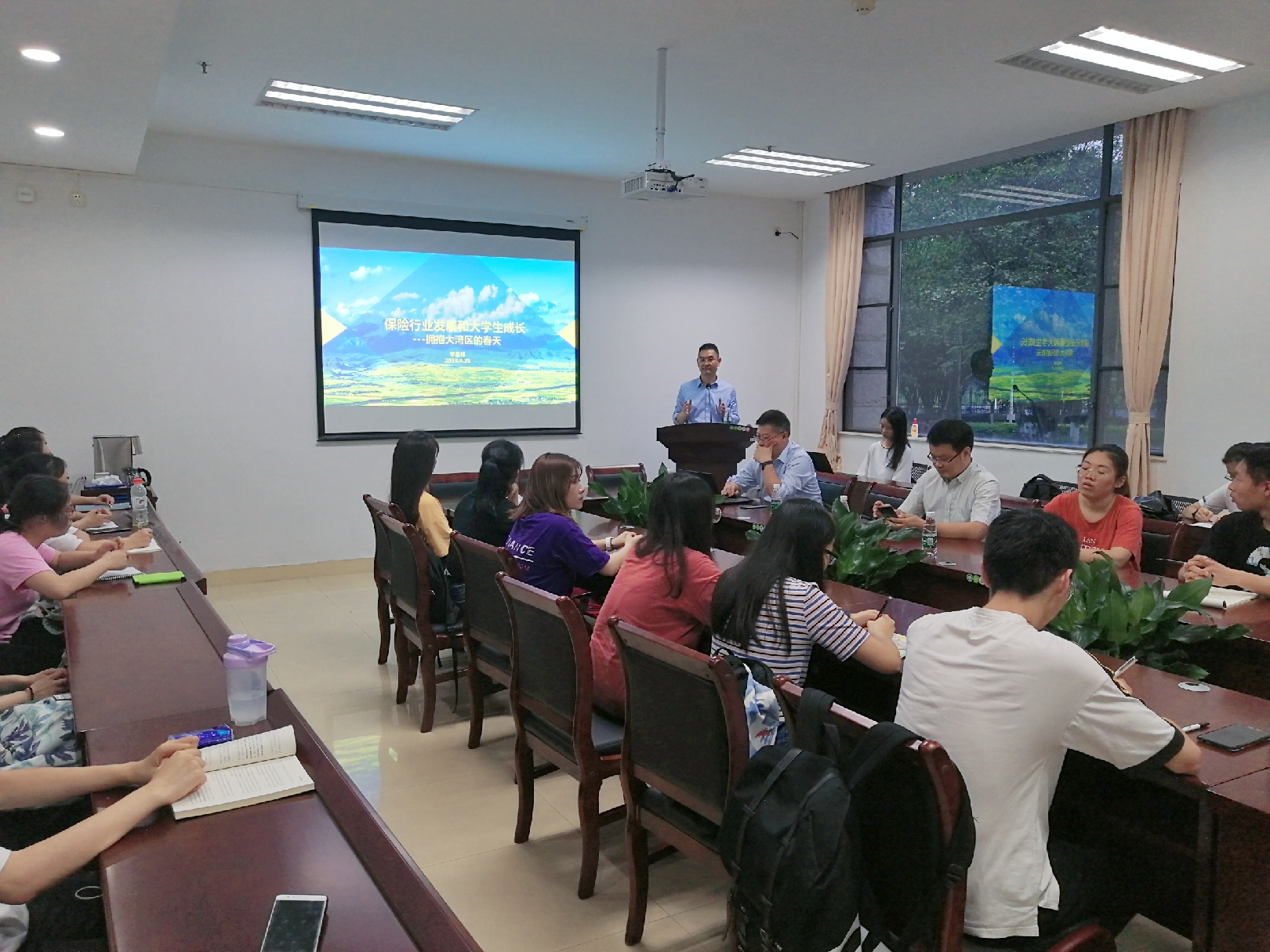李全祥为数学与统计学院青马班及金融学院保险专业部分同学作“保险行业发展与大学生成长”主题讲座。他从保险业的发展入手,并结合我校“明德尚行、学贯中西”校训,勉励广大学子了解粤港澳大湾区的发展,抓住这一重要机遇,提升深度思考能力,持续学习能力和行动力,通过自身努力不断奋斗,成为德才兼备的优秀人才,为国家和社会贡献自己的力量。讲座结束后,同学们踊跃提问,并表示此次讲座受益匪浅,今后一定将个人成长与国家的发展结合在一起,树立家国情怀。