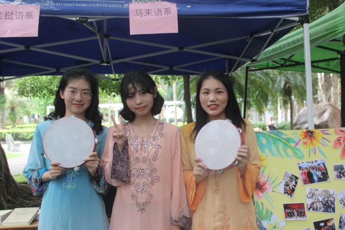 本次活动热闹非凡,八大语系尽展一带一路风情,各个摊位前身着本语种特色服装的学生同样吸引了不少人的眼球。