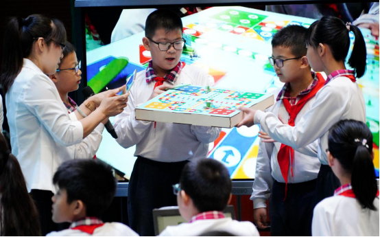 学生们展示自己设计的智能飞行棋