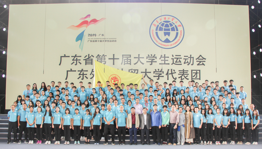 本网讯 5月9日下午,广东省第十届大学生运动会广东外语外贸大学代表团出征仪式在我校南校区体育馆举行。本次大运会我校将派出11支运动队共160名运动健将出征参赛,参赛人数为历届之最。