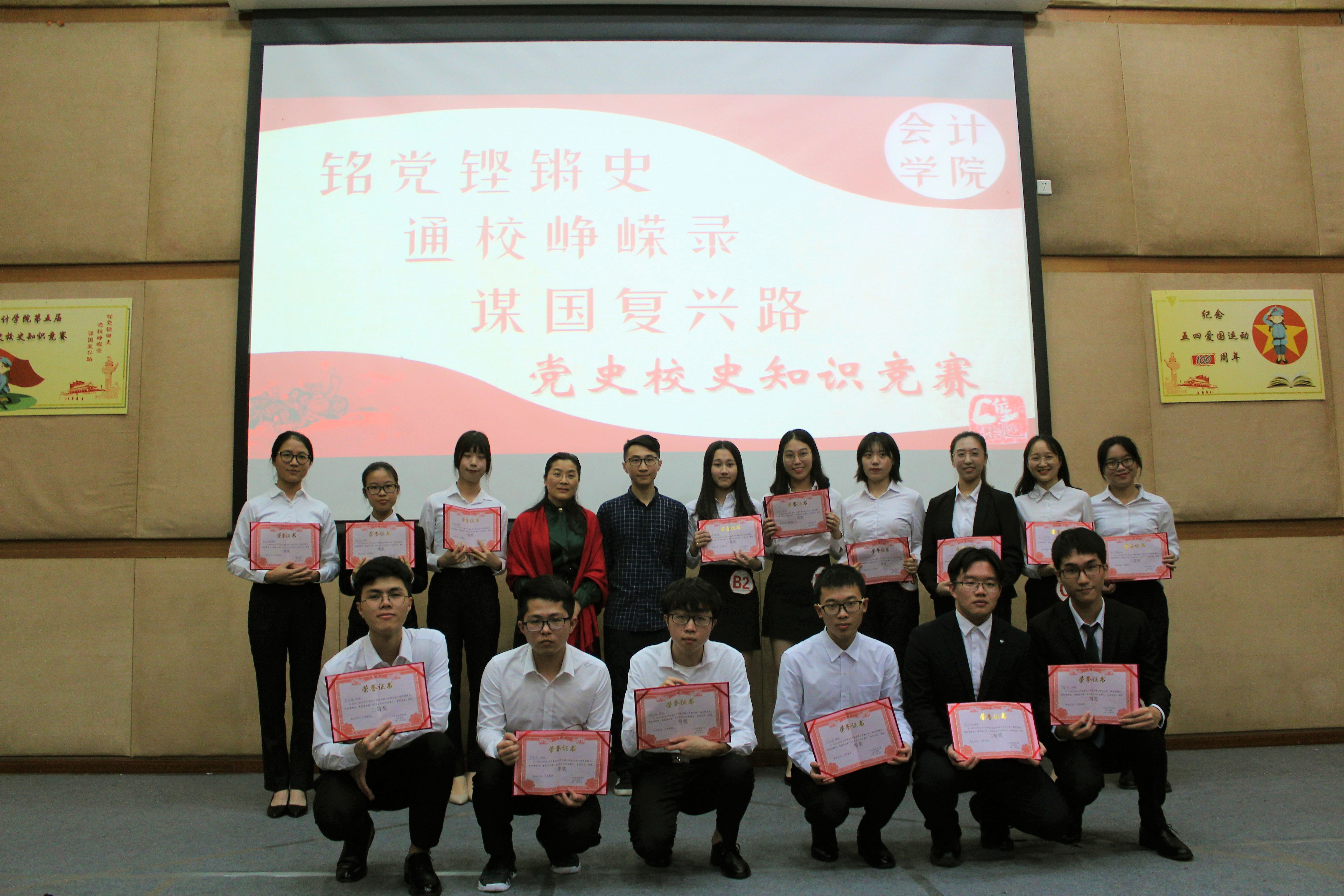 本网讯 5月5日晚,会计学院第五届“铭党铿锵史,通校峥嵘录,谋国复兴路”党史校史知识竞赛决赛在南校区图书馆报告厅举行。本届党史校史知识竞赛以纪念五四运动100周年为主题,旨在拓宽同学们的历史与时政视野,深入学习了党史校史,进一步坚定了理想信念,了解并发扬五四精神。