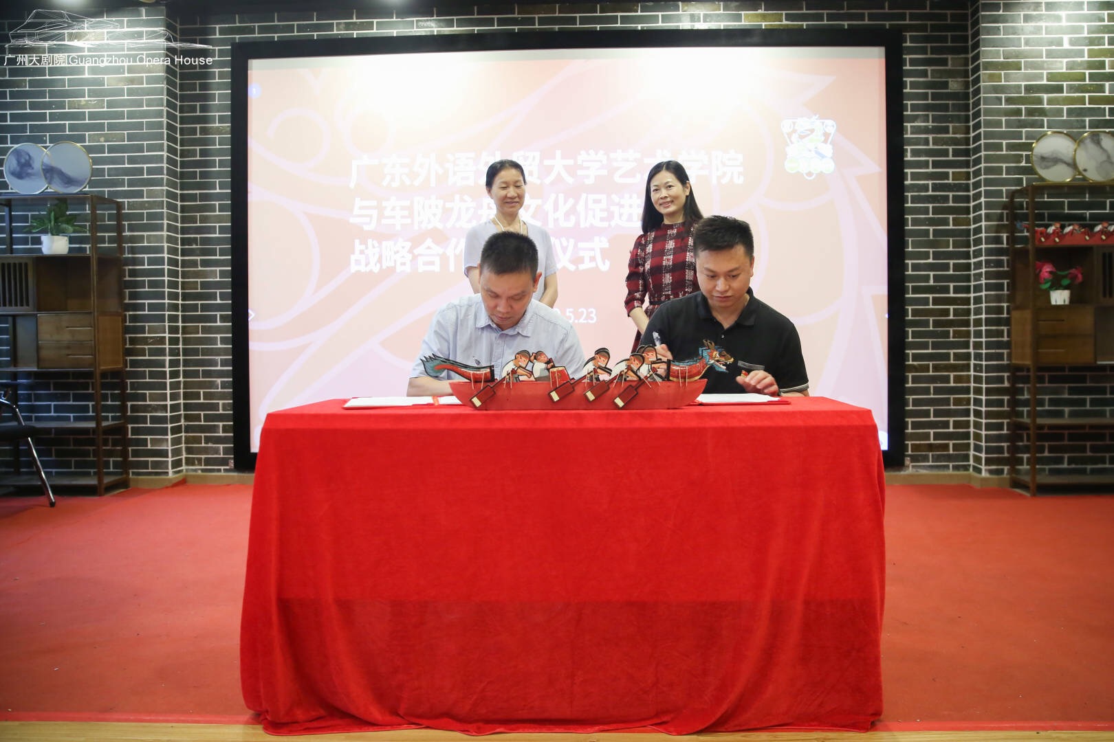 本网讯 5月23日,车陂龙舟文化促进会与广府高校战略签约仪式暨首届龙舟艺术节发布会在车陂“一水同舟·龙舟文化展览馆”举行。在广州大剧院的牵线下,车陂龙舟文化促进会与我校艺术学院及其他院校签订了战略合作协议,以“宗祠剧”作为开端,将与车陂各大宗祠共建高校教学实践基地,深入民间、挖掘整理岭南原生文化并用青春语汇进行艺术表达,共同创作相关主题舞台戏剧作品。