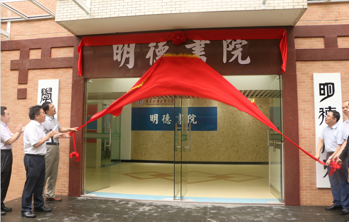 本网讯 5月28日,明德书院在南校区正式成立,校党委书记隋广军、副校长刘海春为书院揭牌。明德书院是我校适应大学学分制的改革,满足学生个性化学习发展的需求,把学生的学习空间从课堂延伸到公寓,致力于打造“住学研一体”的学生家园,为实现教学相长,实现思政工作的全覆盖所做的一次积极探索。
