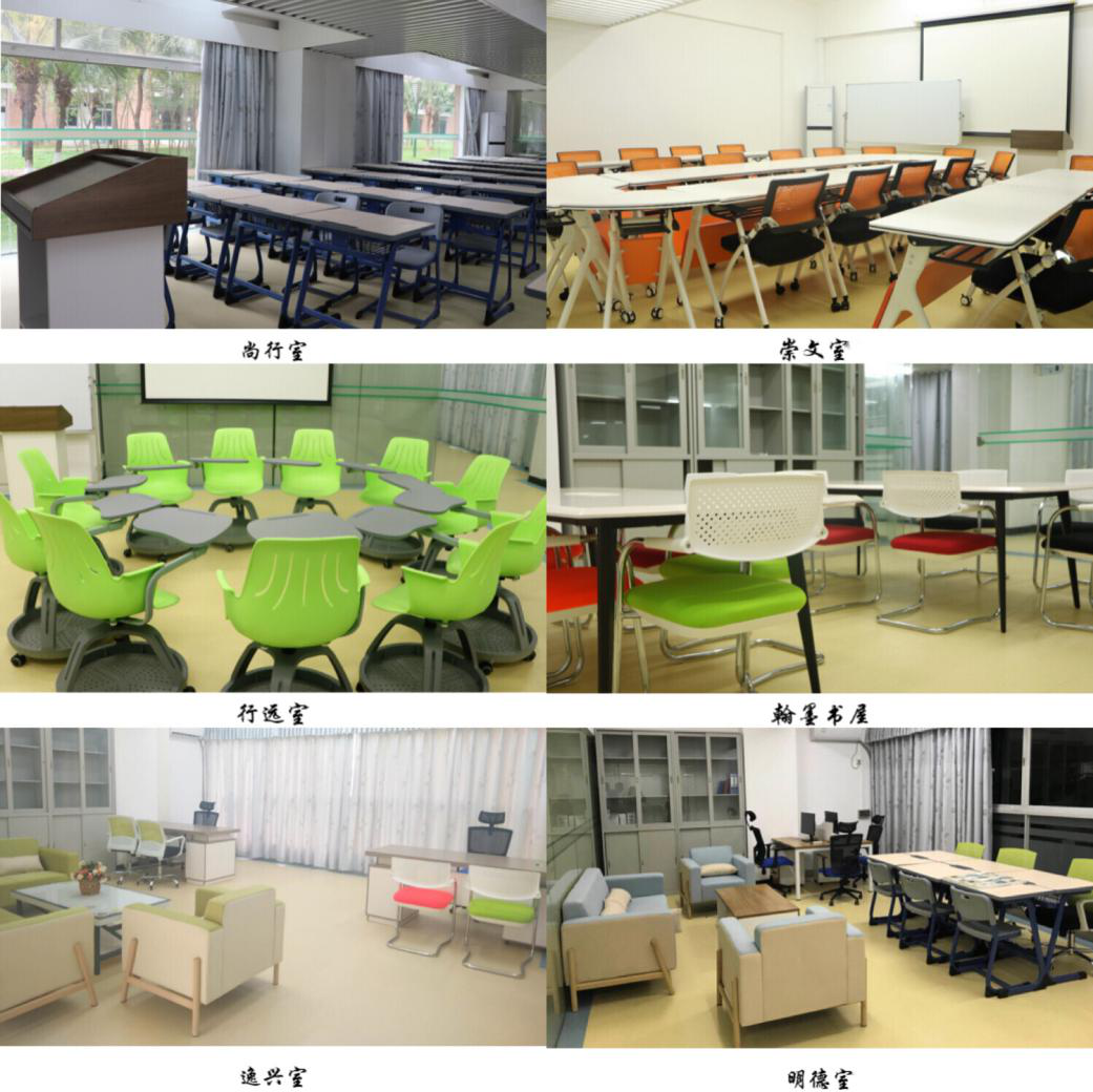 尚行室——多媒体课室。可容纳超过80人,用于举办各类学术研讨、文化活动、邀请知名专家学者开设各类讲座等,平时开放作为学生自习室;