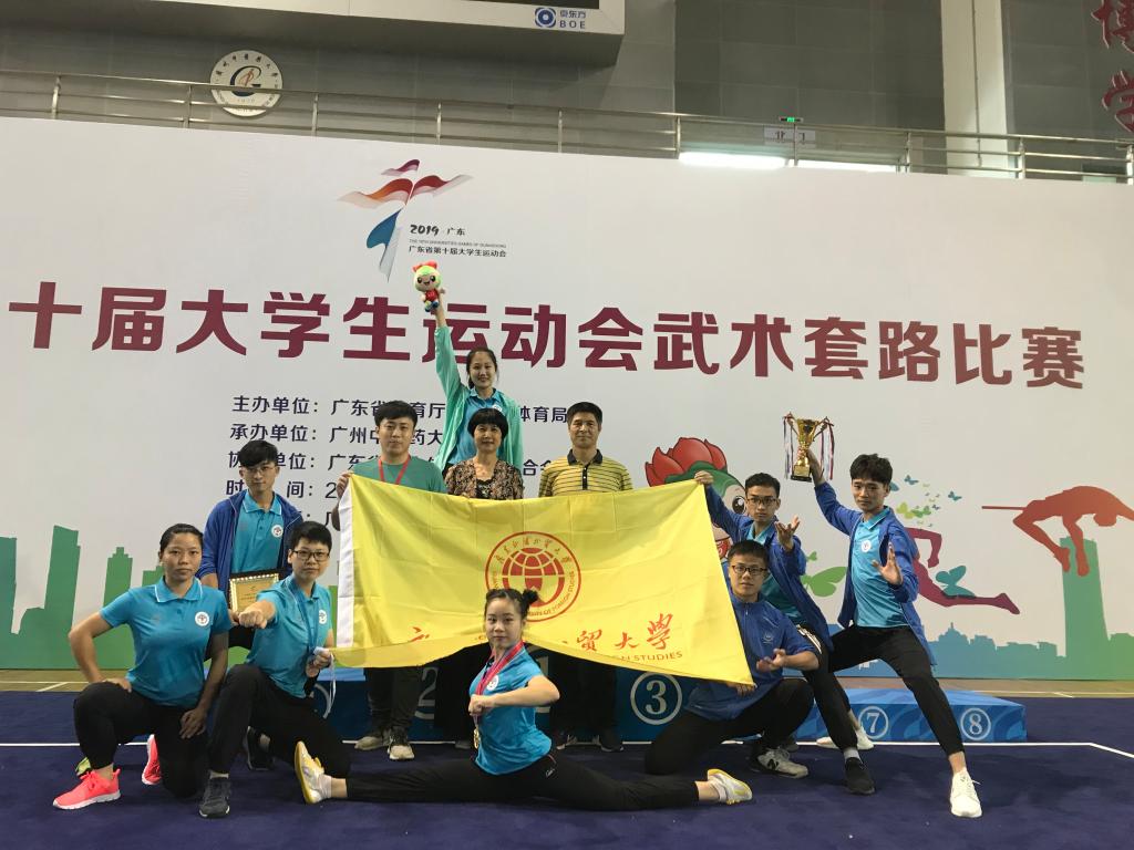我校武术队在本次大运会中喜获甲组团体总分第四名,其中,陈琦楠负伤上阵,成功斩获自选剑项目一金一银,李来英荣获自选棍项目的铜牌。