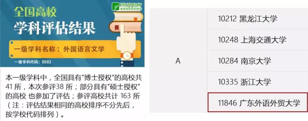 学科评估成绩显著。在教育部第四轮学科评估中,我校是广东省拥有参评学科进入全国排名前5%的四所高校之一,共用7个一级学科上榜,其中外国语言文学进入全国排名前5%、获评A档,位列广东第一;应用经济学获评B-、位列广东第三。