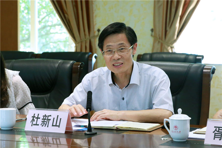 杜新山充分肯定我校社科工作和智库建设取得成效,认为总体上呈现出优势突出、作用独特、发展稳健特点。他指出,高校社科研究和智库建设要对标最高、最好、最优,瞄准国际前沿、立足广东实践、服务国家发展。特别是新型智库是国家综合软实力的重要体现,对完善国家治理体系和治理能力现代化发挥重要作用。广东外语外贸大学作为省内特色鲜明高校,要充分发挥学科特色和专业优势,加强战略性前瞻性储备性研究,着力打造全面、客观、真实、可信的高端智库,更好地为国家和广东发展提供决策依据和智力支撑。