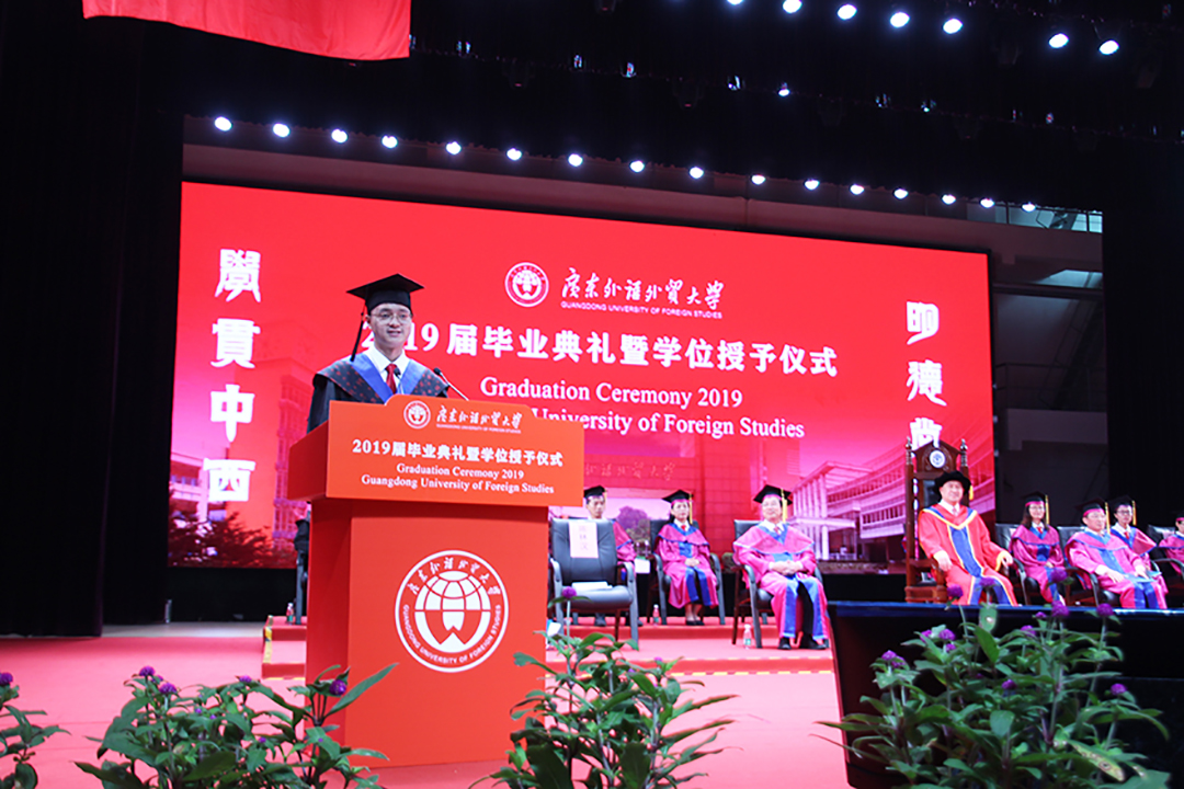 今日过后,我们即将踏出广外的大门,去开启人生一段全新的旅程。我相信,不管我们走向何方,都必将迎来自己人生崭新的、更广阔的舞台。