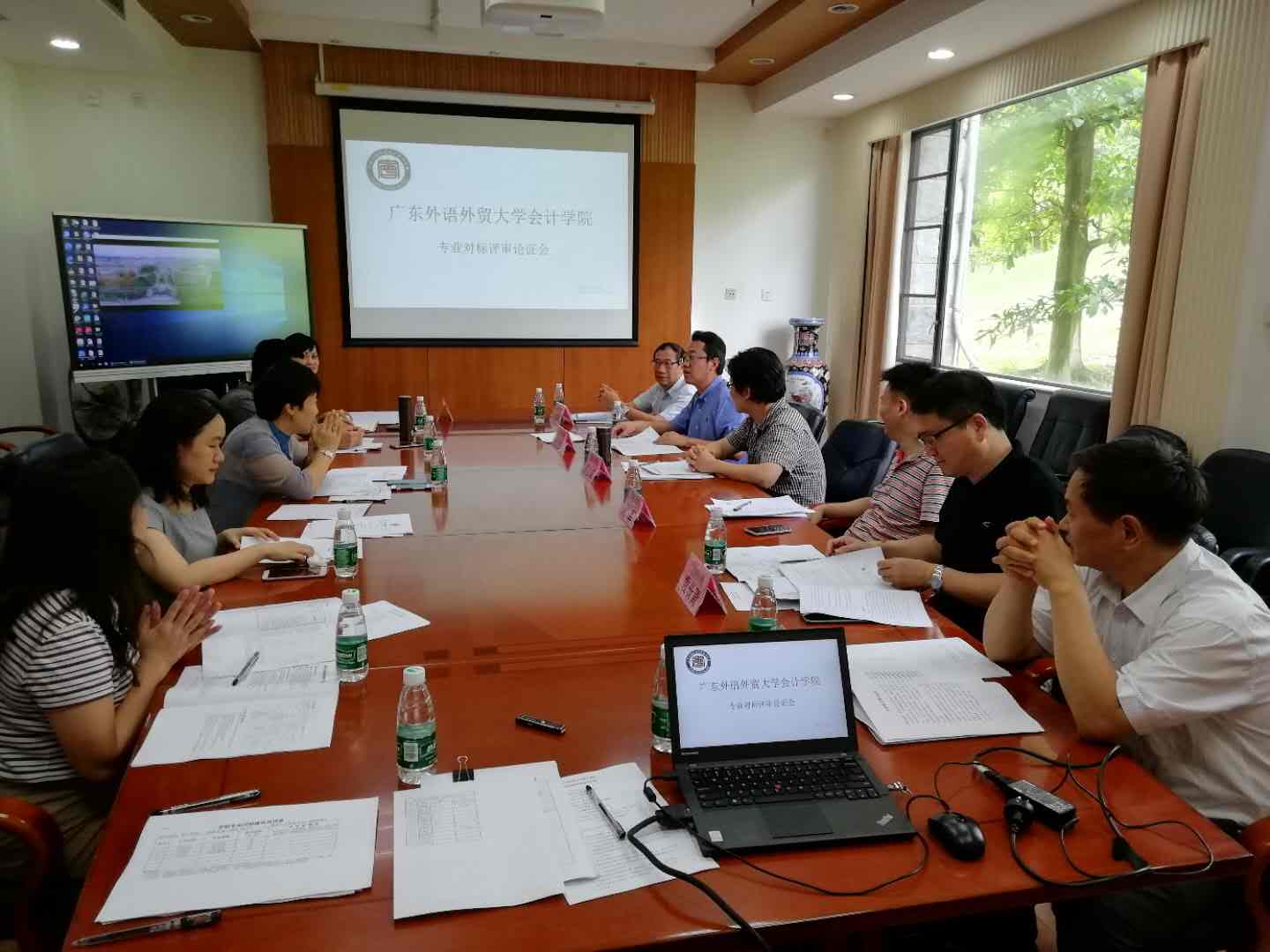 中山大学教授张俊生、暨南大学教授黎文靖、华南理工大学教授谢军及我校教学质量管理评估中心主任袁长青、商学院院长朱文忠、发展规划处副处长余盛明组成的专家组听取汇报后,从专业培养目标、培养规格、课程体系、师资配备、教学条件、质量保障等方面对会计学院专业对标建设自评工作进行了论证。专家组表示,会计学、审计学和财务管理三个本科专业所有指标达到了国标要求,硬性指标需进一步对照国标进行量化,软性指标可在优化、卓越上凝练,可突出财政部《会计行业中长期人才发展规划(2010-2020年》的要求,彰显专业特色。