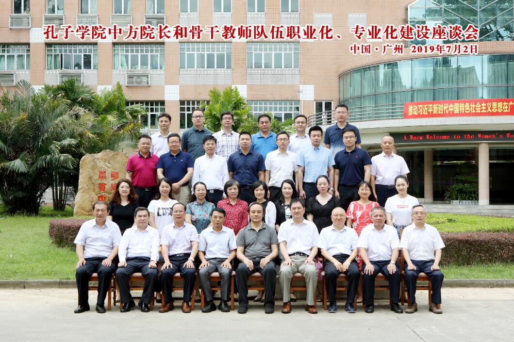 本网讯 7月2日上午,孔子学院总部副总干事赵国成、师资处处长赵燕清以及美大处、欧洲处、亚非处相关负责人来访我校,并参加孔子学院中方院长和骨干教师队伍职业化、专业化建设座谈会。广东省教育厅副厅长朱超华、我校党委书记隋广军在会上致辞,座谈会由我校副校长焦方太主持。省教育厅及来自各兄弟院校的相关负责人参加座谈会。