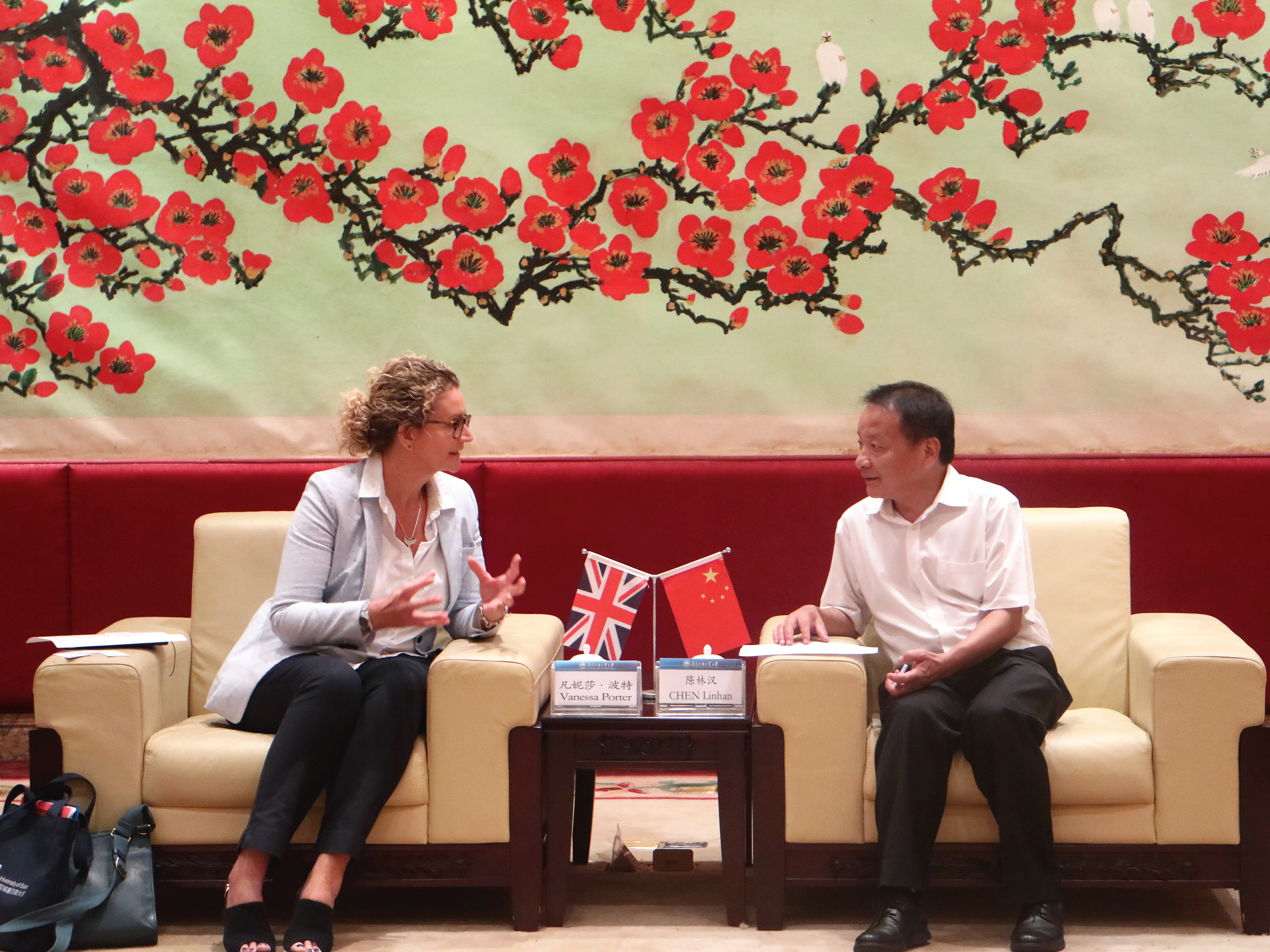 陈林汉对凡妮莎·波特的来访表示欢迎。他提到,两校长久以来有着良好的合作基础,在国际化的大背景下,相信两校会继续展开更广泛的合作。他期望我校与埃塞克斯大学展开全方位合作,为两校师生提供更好的学习条件和环境,合作培养专业化和特色化的人才。