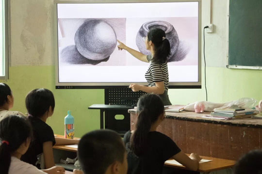 队员在给学生们上美术课