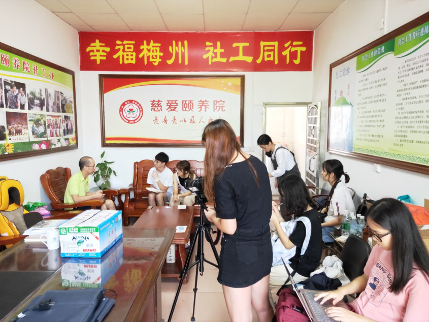 “梅州新传新语服务队”的同学则来到位于粤北地区的梅州市,在那里开展了社会实践活动。在此次活动中他们分为梅州广播电视台留台组、梅州足球调研组、梅州养老调研组共三组开展活动。留台组的同学走进电视台,通过在电视台的实地实践,感受电视行业人员的工作氛围,同时扩大自己的专业视野、提升专业素养与职业技能。