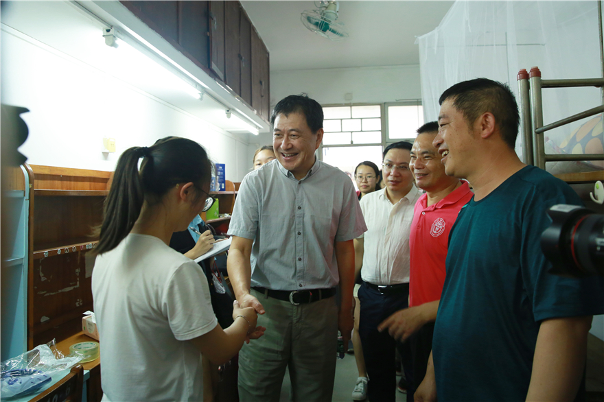 我校党委书记隋广军和校长石佑启分别在北校区和南校区实地检查各项迎新工作,走访注册点、学生宿舍、饭堂等,慰问新生、家长以及相关工作人员、志愿者,向家庭困难学生代表发放慰问品、慰问金。隋广军表示,无论是“一带一路”、粤港澳大湾区还是中国引领参与全球治理,都向我校的人才培养工作提出了新的课题,提供了新的发展机遇。他希望2019级新生在时代的大背景下,抓住机遇,学会把“小我”融入“大我”,随国家的发展一同进步。石佑启表示,各项工作准备充分,迎接活动开展得井然有序,便捷高效。他欢迎各位新同学加盟广外这个大家庭,希望大家在这里快乐健康地学习、生活,不负新时代,立德修身、逐梦前行,在勤学善思、不懈奋斗中成就美好未来。