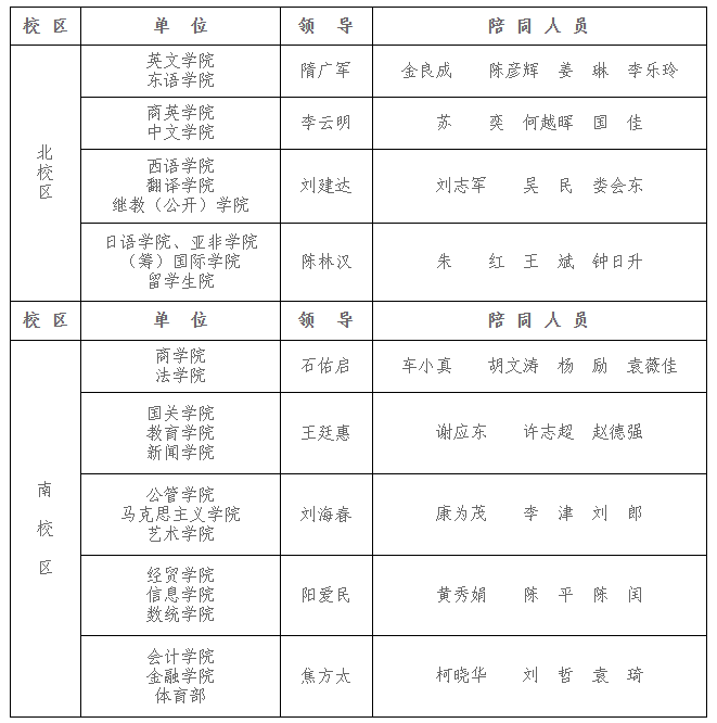 隋广军一行在北校区走访了英文学院和东语学院。在新学期工作检查中,隋广军对两个学院发展成果给予肯定。隋广军针对两学院人才培养、队伍建设、党建思政等方面工作提出了以下几点要求:一是注重本科教学,夯实基础,为本科教育赋予新的内涵;二是制定详细的发展计划,将创新班建设落实到位;三是坚持立德树人,严格规范办事程序,加强师资队伍管理;四是高度重视对师生的思想政治教育,确保意识形态工作安全,为学院发展营造良好氛围。隋广军希望各学院充分发挥优势、彰显特色,提升核心竞争力,新学年在学科建设等方面更上一层楼。