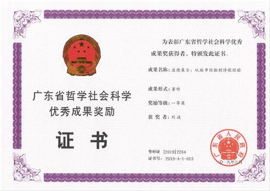 2、刘波的著作《波德莱尔:从城市经验到诗歌经验》获著作类一等奖