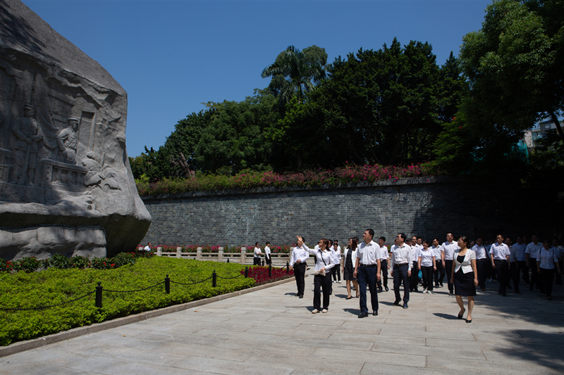 全体人员参观了广州起义纪念馆,并观看纪录片《三大起义》。通过参观,大家回顾了广州起义这一个中国共产党和中国历史革命上的重大事件,体会了中国共产党人献身革命理想的坚强意志和英雄气概。在烈士陵园庄严肃穆的广州起义纪念碑前,隋广军代表学校党委向烈士敬献花篮,并与大家一起重温入党誓词。