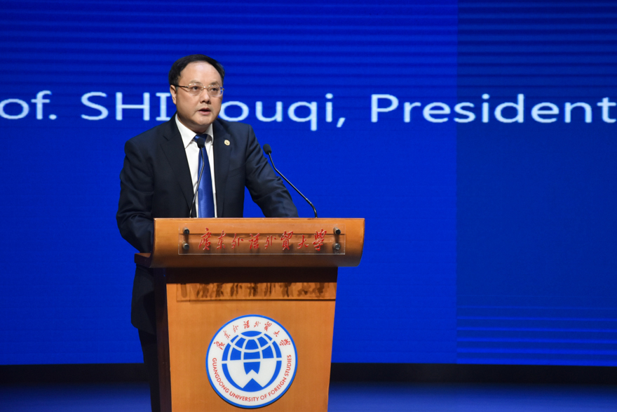 石佑启代表学校对联合国外联项目代表团和参加宣介会的师生表示热烈欢迎,对人力资源社会保障部和联合国给予广外的关心、信任表示感谢。他强调,一直以来,广外坚持国际化办学特色,全力培养具有国际视野、通晓国际规则、能直接参与国际合作与竞争,有社会责任感的国际化人才。他指出,近年来,广外开设“国际经济与贸易”、“会计学”、“翻译+经济学(全球经济治理)”三个国际组织创新班,创办“国际会议传译证书班”和“国际治理创新硕士生项目”等高端国际组织人才培养项目,设置“全球经济治理”博士点,举办“中国国际治理论坛”“国际组织周”“国际谈判高级研修班”“国际组织及外交外事菁英训练营”等形式多样的国际组织相关教育实践活动,探索形成了“聚焦-全景-导入”高素质国际组织人才育人模式,有近70人到联合国等国际组织实习,100余名优秀毕业生进入外交部工作。他勉励青年学子志存高远,胸怀世界,奋发进取,为构建人类命运共同体贡献中国力量。