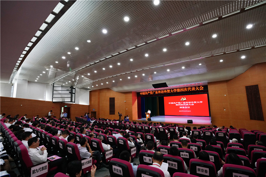 大会通过代表资格审查报告、大会主席团成员名单和秘书长名单、大会议程。大会议程包括听取和审议中国共产党广东外语外贸大学第三届委员会工作报告、审议中国共产党广东外语外贸大学第三届纪律检查委员会工作报告、选举中国共产党广东外语外贸大学第四届委员会、选举中国共产党广东外语外贸大学第四届纪律检查委员会。隋广军还宣布了各代表团团长、副团长名单。