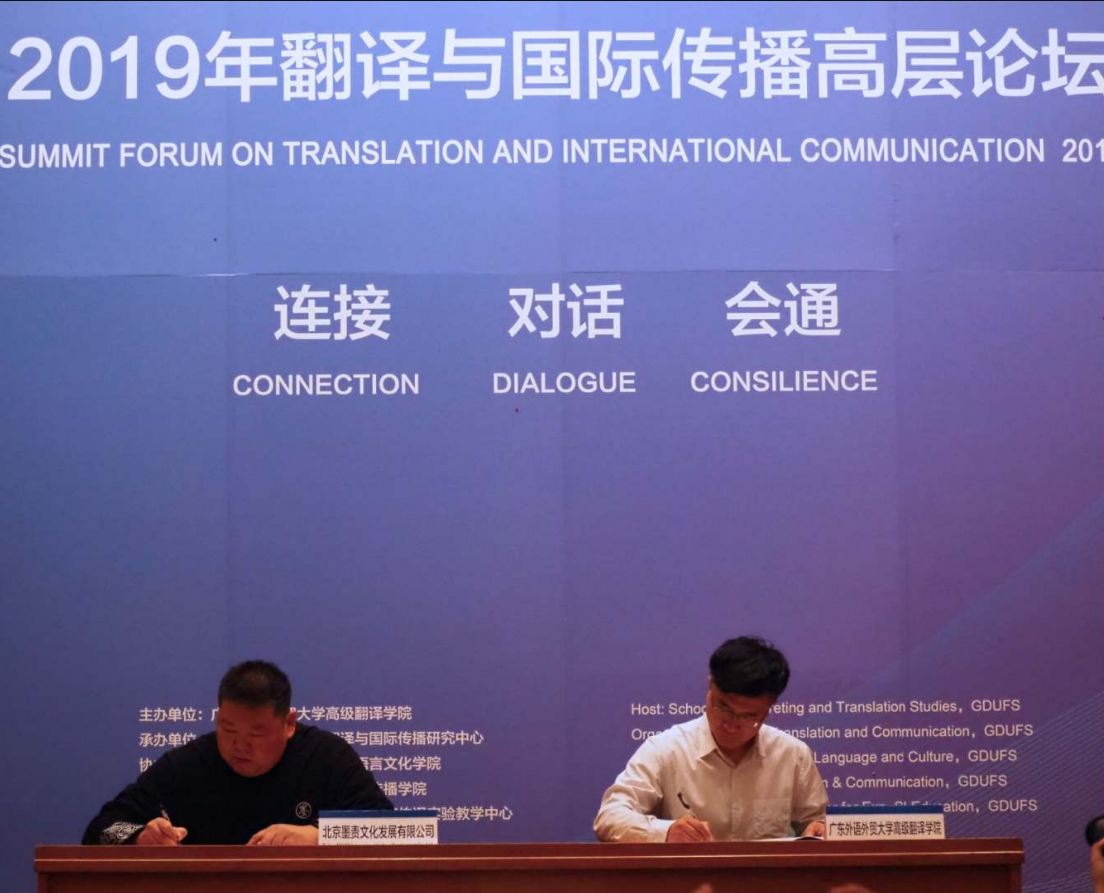 论坛还举行了媒体翻译与国际传播产学研融合签约仪式。翻译学院党委书记李和民代表学院与北京墨责文化发展有限公司等三家合作单位完成签约。为进一步提升翻译专业硕士研究生的实践应用能力,翻译学院还邀请资深业界翻译人士担任媒体翻译硕士研究生特聘导师。