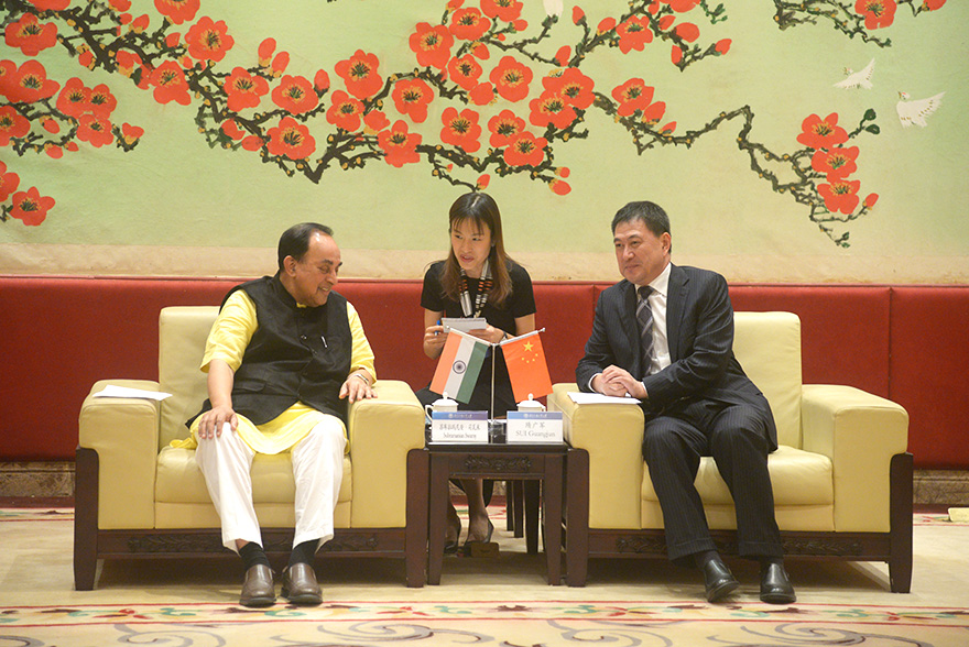 本网讯 11月8日,印度人民党BJP战略行动委员会前主席苏布拉玛尼安·司瓦米(Dr. Subramanian Swamy)一行来访,我校党委书记隋广军在北校区行政楼贵宾厅会见来宾。双方就教育合作、智库建设等进行交流。