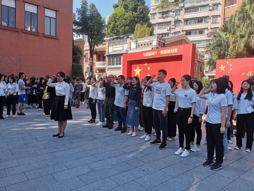 参观伊始,在中共三大会址广场,书记周秀娇领誓。师生党员面对党旗,重温入党誓词。周秀娇与师生党员一起重温中共三大召开的历史意义。中共三大的召开,是迄今中国共产党唯一一次在广州召开的、具有重大历史意义的全国代表大会,对中国革命产生了巨大的影响;大会正式决定同孙中山领导的国民党合作,建立革命统一战线,使党能够团结一切可能联合的力量,共同完成反帝反封建的民主革命任务。周秀娇寄语师生党员,要不断从党的光辉历史中汲取奋进的力量,牢记使命担当,自觉提高政治站位,牢固树立“四个意识”,坚定“四个自信”,坚决做到“两个维护”,不忘初心,牢记使命,踏踏实实做好本职工作,砥砺奋进,为实现中华民族伟大复兴的中国梦而努力。