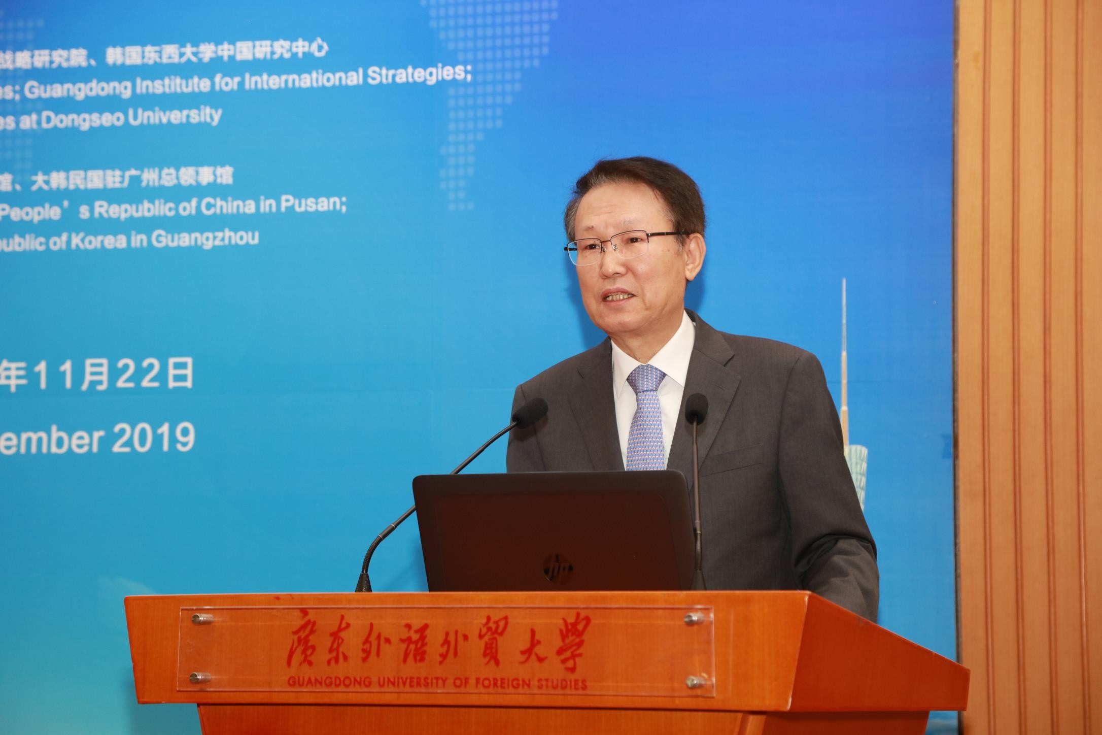 本网讯 11月22日,由广东国际战略研究院、21世纪海上丝绸之路协同创新中心与韩国东西大学东亚研究院联合举办的第一届21世纪海上丝绸之路——新南方政策合作论坛在我校举行。论坛设置了三个议题:中韩地方政府之间的合作交流、韩国与东南亚的外交与安全、中韩经贸与物流合作。我校党委书记、广东国际战略研究院常务副院长隋广军,韩国原驻华大使、东西大学东亚研究院院长辛正承,韩国驻广州总领事馆副总领事裴汉镇等专家学者参加论坛。论坛由我校副校长王廷惠主持。此次论坛得到了中国驻釜山总领事馆和韩国驻广州总领事馆的大力支持。