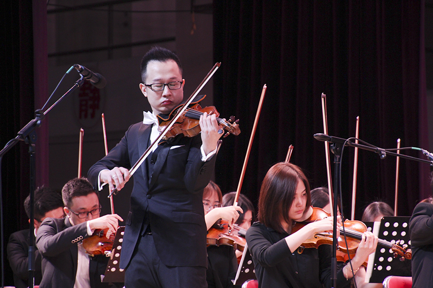 小提琴协奏曲《梁山伯与祝英台》是本次音乐会的一大亮点。这是管弦乐团首次挑战演奏《梁祝》全曲,并特邀嘉宾刘颖聪一同演奏。绵长舒缓的乐曲就像有情人之间的低喃耳语,轻飘飘的落在听众的心间,所有人都沉浸在这段流传千古的爱情故事中。