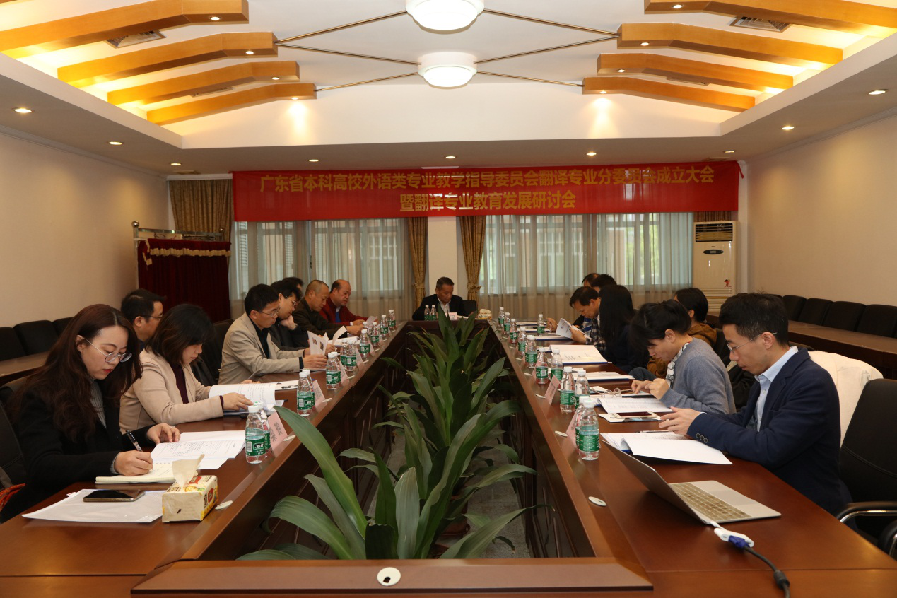 本网讯 近日,2019至2023广东省本科高校外语类专业教学指导委员会翻译专业分委员会成立大会暨翻译专业教育发展研讨会在我校召开,会议由我校翻译学院承办。参加会议的有来自我校和华南理工大学、华南师范大学、广东财经大学、澳门理工学院、南方医科大学、广东工业大学、广东金融学院、广州市外事翻译室、深圳云译科技有限公司、广州市玲之翻译有限公司等单位的近20名委员。会议由新一届翻译专业分委员会秘书长邹兵主持。