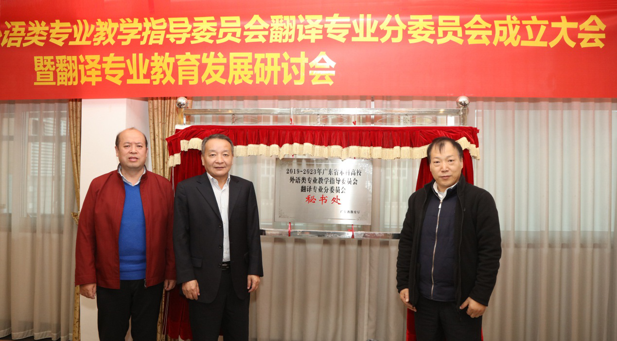 成立大会上,陈林汉、大会特邀嘉宾高级翻译学院院长李瑞林和张保红共同为翻译专业分委员会秘书处揭牌,张保红为翻译专业分委员会委员颁发聘书。