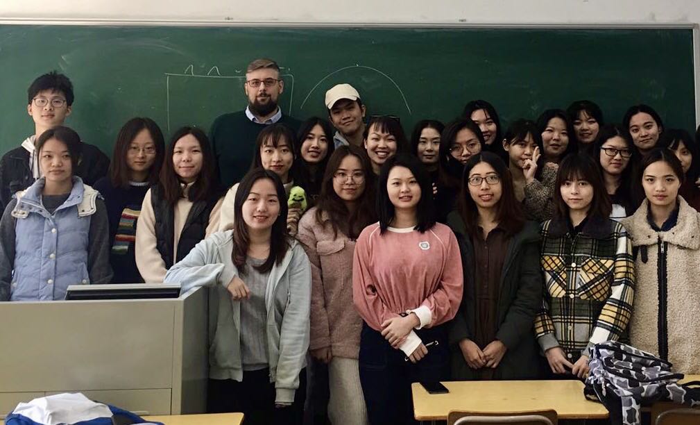 作为一名教师,智辉在广外不断成长。正如他所说,“广外为我提供了很好的职业发展平台,也为我提供了一个温暖的大家庭”。广外是在全国率先启动外教职称评聘工作的高校。2016年,智辉获聘讲师职称,2017年晋升为助理教授,2018年他被广外授予“模范教师”称号。他说,广外给了他荣誉感,也给了他一份归属感。广外关心外教在学校的发展和生活,每学期都定期举办交流会,向外教通报学校的发展情况,介绍外教工作的规划与发展,解答外教们工作和生活上的问题。除此之外,学校积极邀请外教参与到学校的各项活动中,在2018年智辉还参与新春团拜活动,与广外的同事和学生一同合作表演了一个贺岁节目。