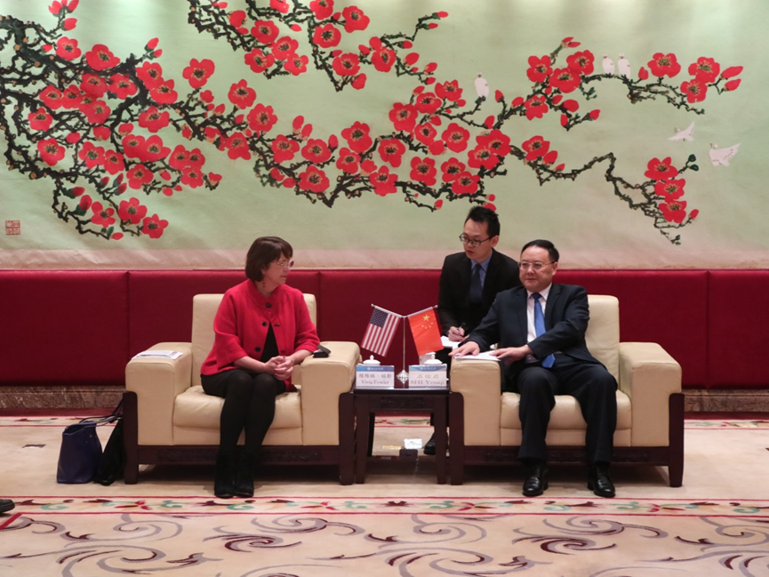 本网讯 近日,美国卫斯理安学院校长维维娅•福勒(Vivia Fowler)一行来访,我校校长石佑启在北校区行政楼贵宾厅会见来宾。双方就加强两校合作及交流项目合作等进行探讨。
