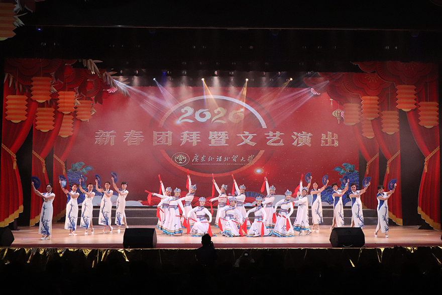 本次演出得到了我校爱心校友以及兰和科技有限公司、中国银行广州黄石东路支行、天天洗衣广州有限公司的大力支持。新春团拜暨文艺演出由校党委宣传部、党委教师工作部、校工会和艺术学院主办。